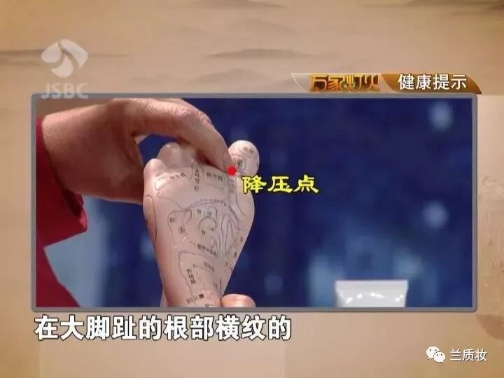 血压高的时间越长,这地方的老茧越明显。另外,我们脚上的反射区是交叉的,左脚趾反应右边头面部问题,右脚趾反应左边头面部问题。